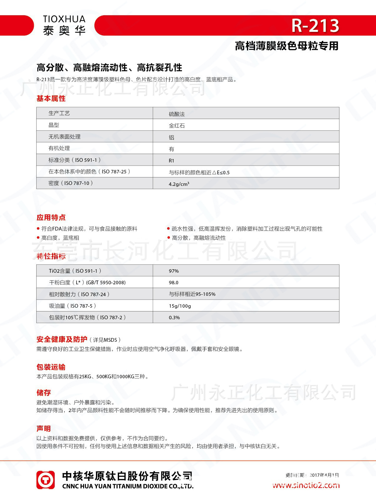 中核华原钛白股份有限公司:中核钛白粉R-215、R-216、R-219