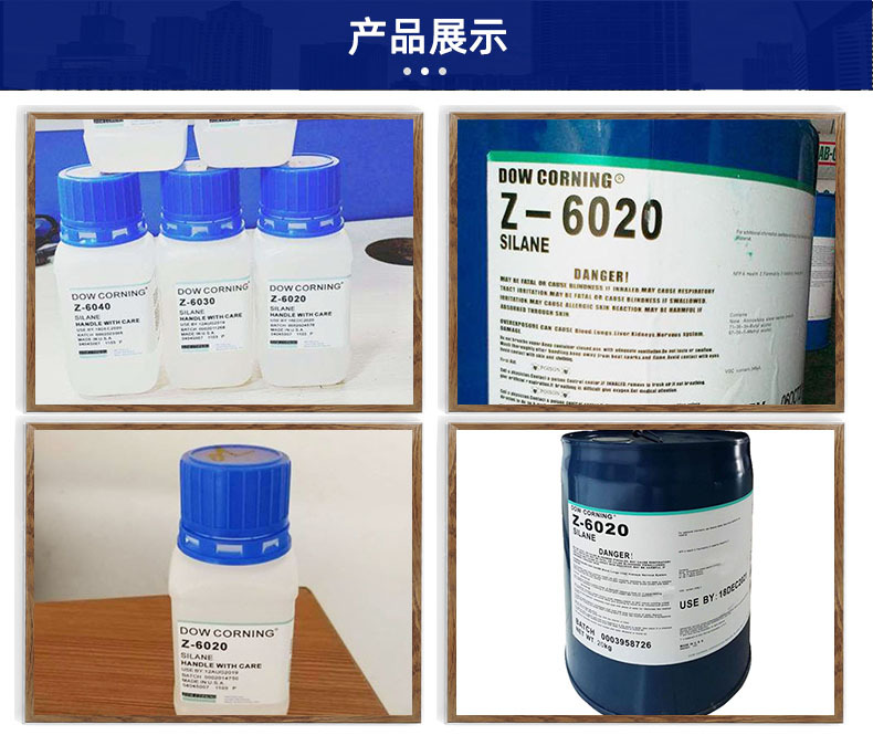 产品应用:1.XIAMETER. OFS-6020硅烷作为粘土增强型天然橡胶和丁腈橡胶的偶联剂,粘土经本产品处理后同未处理相比可提高物理性质和动态力学性能2.XIAMETER. OFS-6020硅烷可用作矿物填料增强尼龙6,尼龙66及PBT树脂的偶联剂3.用于玻璃纤维增强酚醛树脂,蜜胺树脂及环氧热固性复合材料,即可用作玻璃纤维处理剂,也可用作树脂添加剂4.用作制造铸件和耐磨件的热固性树脂的添加剂提高性能5.酚醛树脂,蜜胺树脂及其它有机树脂的偶联剂,提高这些树脂用作玻璃,矿物纤维绝缘,耐磨件及膜制品的粘合性