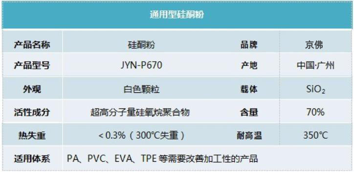 硅酮主要成分为超高分子量硅氧烷聚合物,用做热塑性塑料的加工助剂和表面改性剂,硅酮具有优异的化学稳定性和耐热性能,是当前效率较高的热塑性材料加工的外润滑剂,提高产品的加工流动性和光泽度,降低摩擦系数。