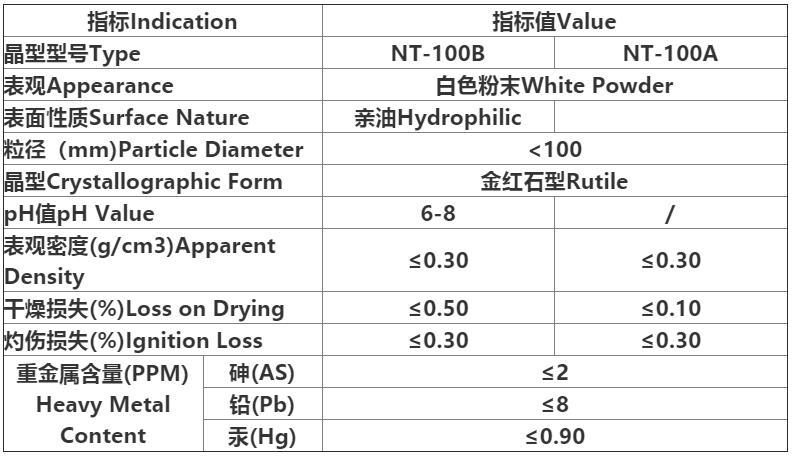 该产品外观为白色粉末。主要分为纳米二氧化钛(nm-Ti02),粒径小,比表面积大。由于使用进口亲水因子材料,添加于化妆品中,能在皮肤表面形成干爽透气的保护层,既能强化表层皮肤呼吸过程,又便于其他营养成份的有效地渗透皮肤表皮。