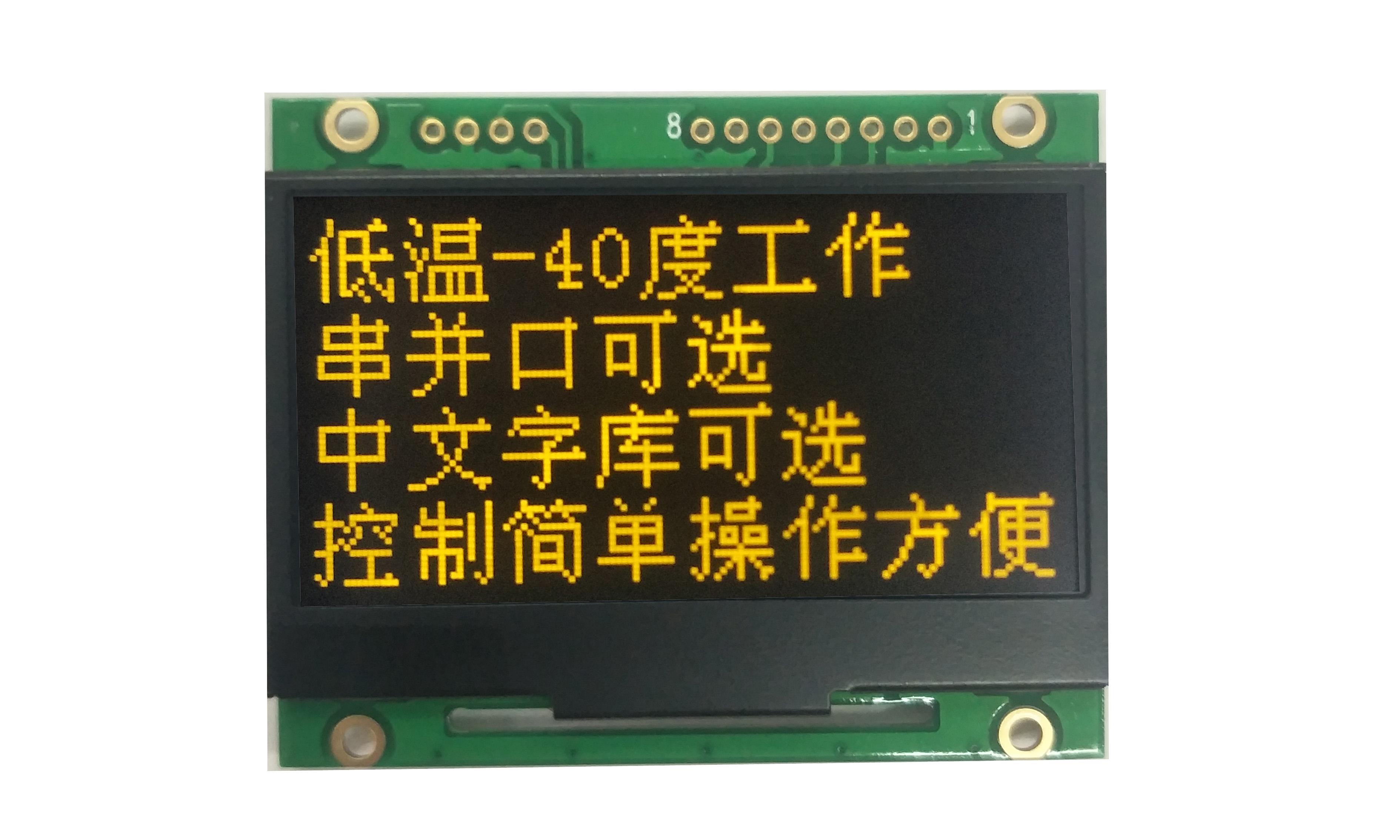 清达光电研发的智能型OLED模组中HGSC128642是一款2.4英寸128*64点阵的OLED模块,宽温显示,工作温度可达:-40-80℃,此款OLED:自带绘图和显示功能,串口通讯:UART/SPI/RS232/USB可选,广泛应用于医疗、环保、电力等行业。