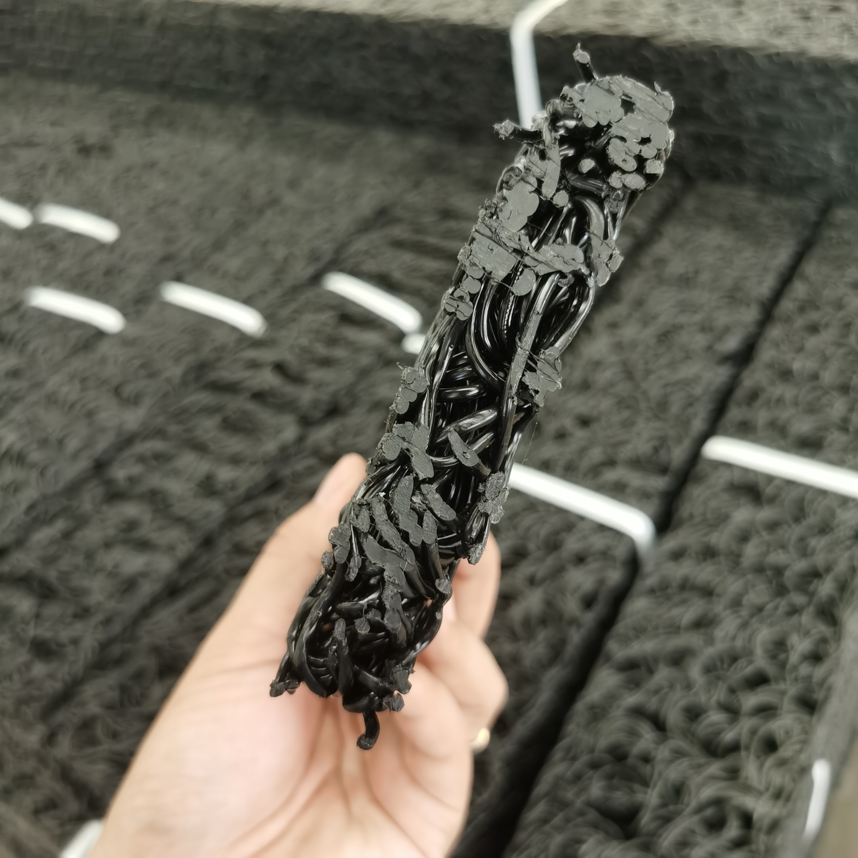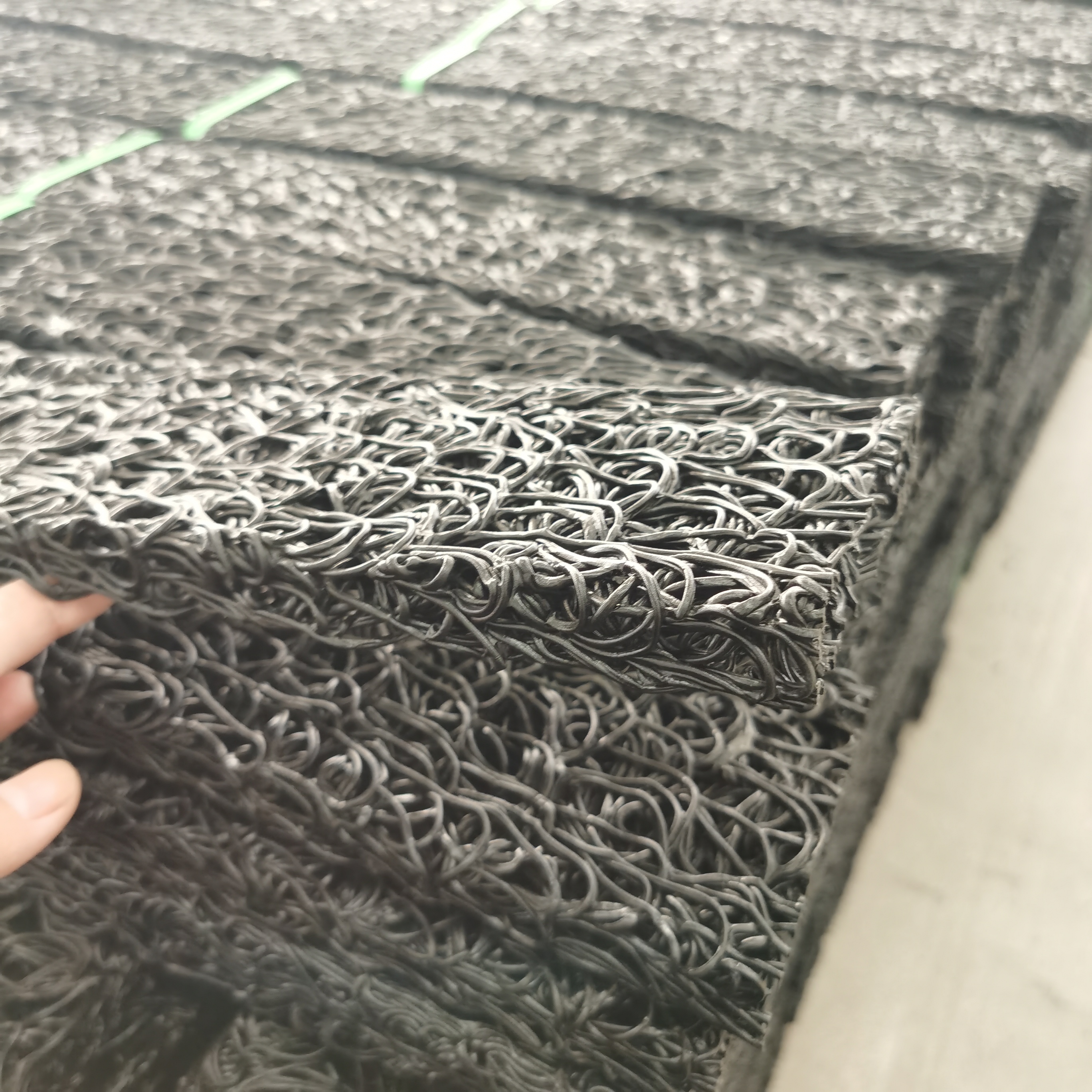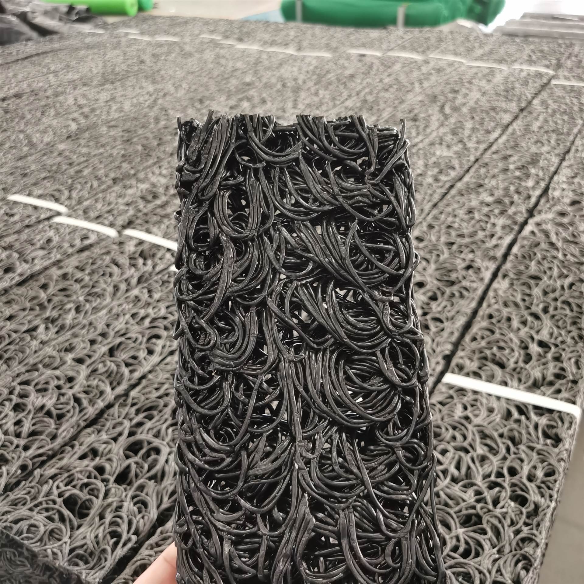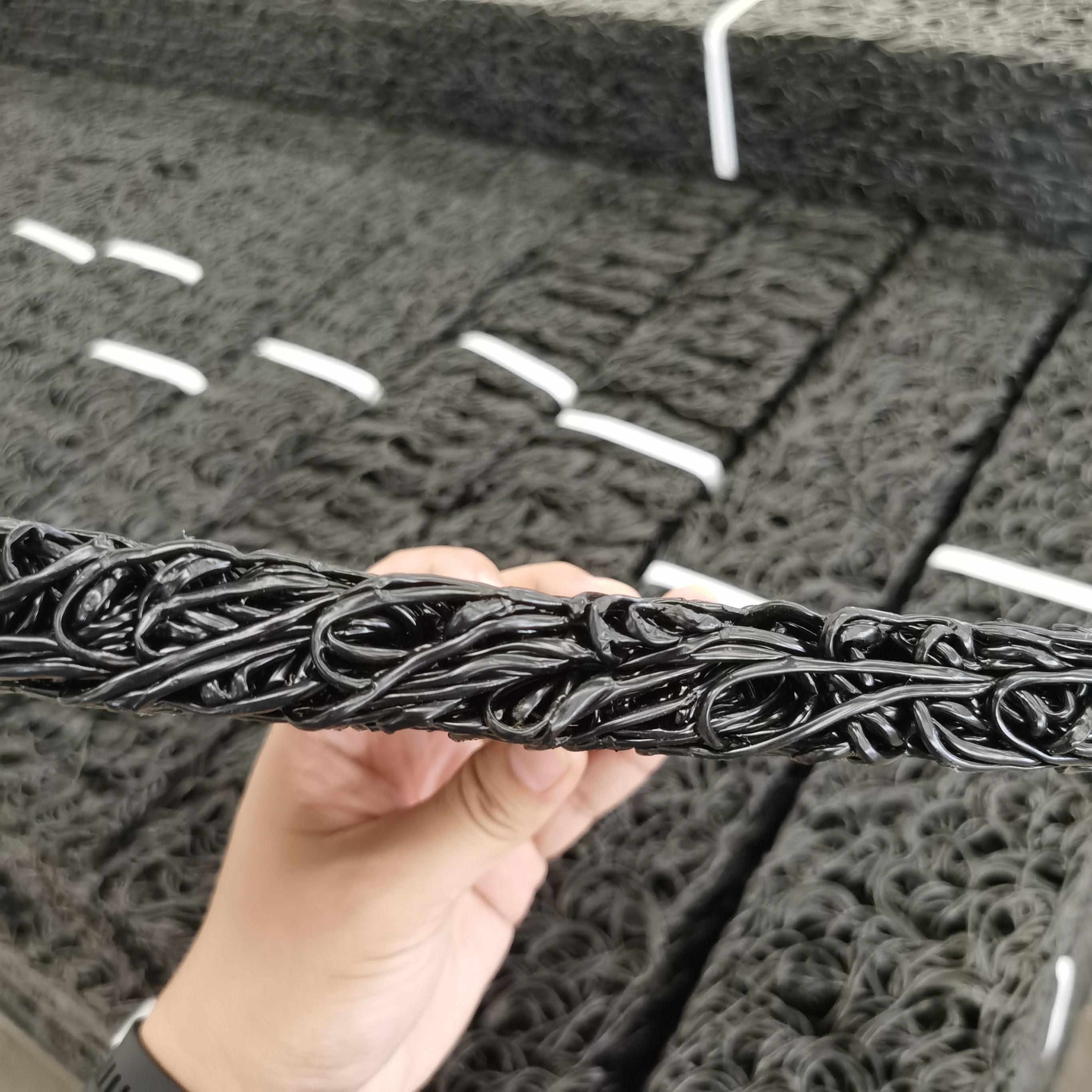 塑料芯体是以热可塑性合成树脂为主要原料,经过改性,在热熔状态下,通过喷咀挤压出细的塑料丝条,再通过成型装置将挤出的塑料丝在结点上熔接,形成三维立体网状结构。