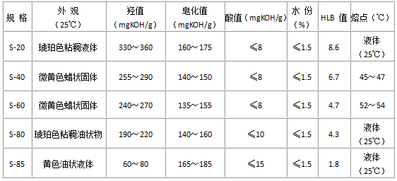 规 格】司盘S-20、S-40、S-60、S-80、S-85