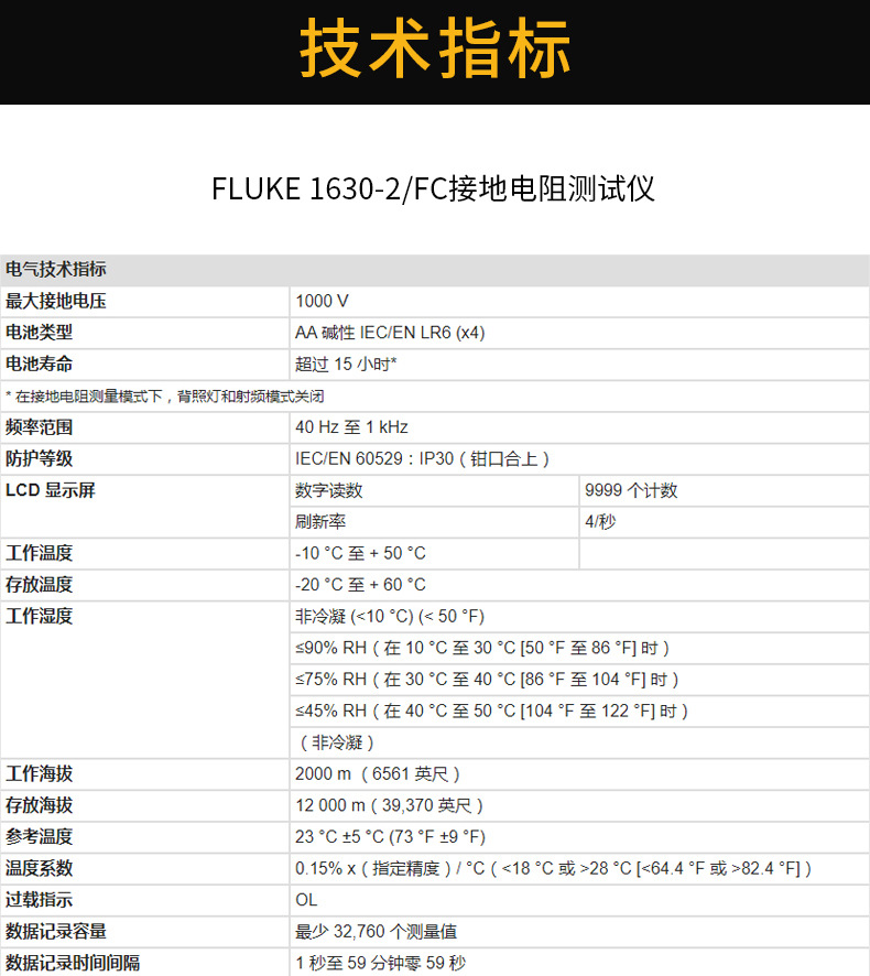 FLUKE福禄克F1630-2/FC钳形接地电阻测试仪 接地电阻钳型测试仪