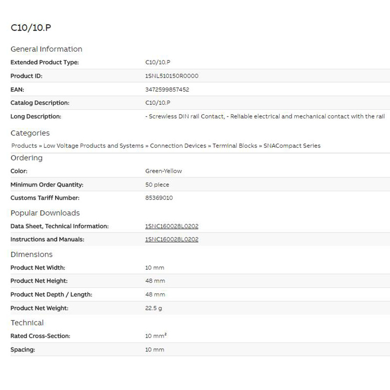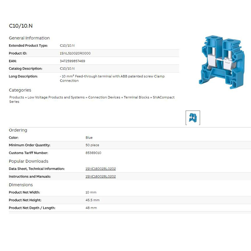 螺钉接线端子10mm2适配附件 终端固定器 端子隔板 标记卡 短路条 电流隔板,适用于C10/10、C10/10.N C10/10.P