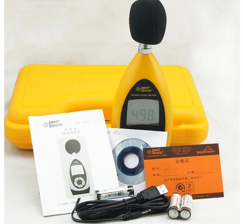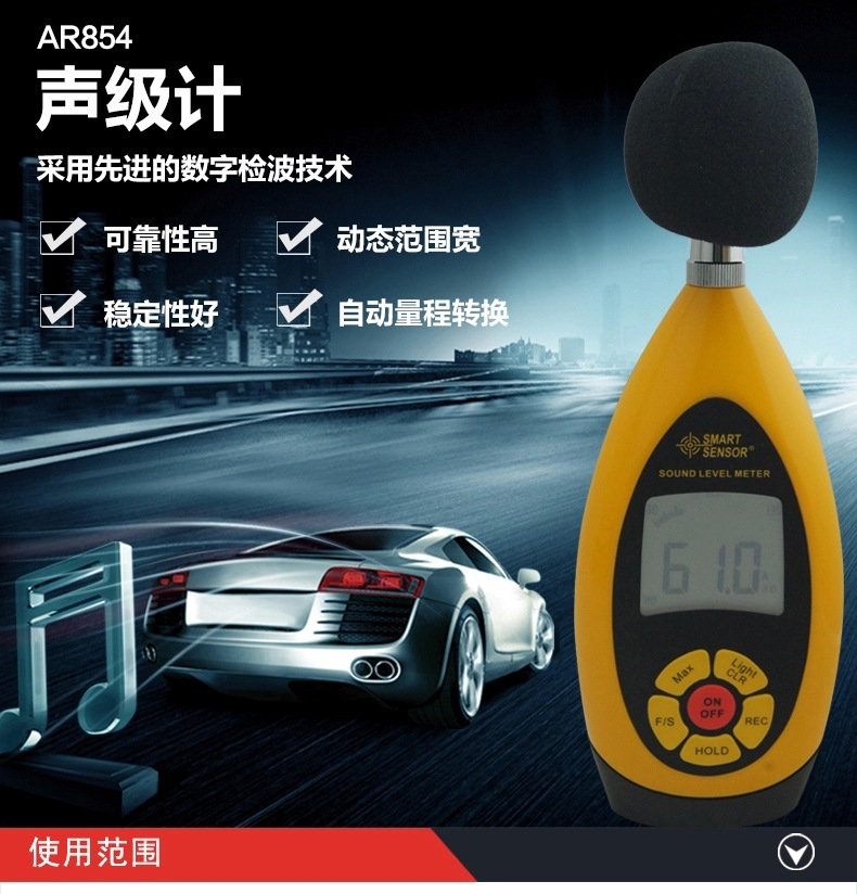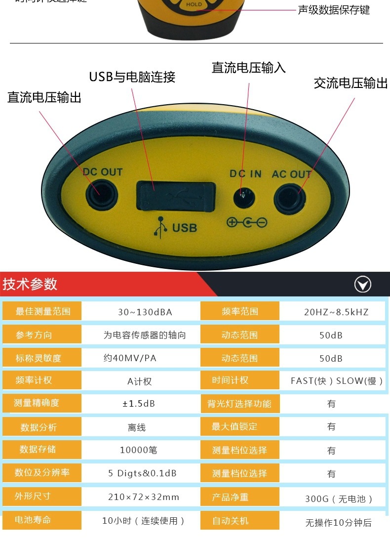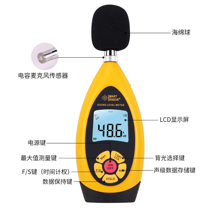 又叫(噪音计)是噪声测量中最基本的仪器。声级计一般由电容式传声器、前置放大器、衰减器、放大器、频率计权网络以及有效值指示表头等组成。声级计的工作原理是:由传声器将声音转换成电信号,再由前置放大器变换阻抗,使传声器与衰减器匹配。放大器将输出信号加到计权网络,对信号进行频率计权(或外接滤波器),然后再经衰减器及放大器将信号放大到一定的幅值,经过数字电路处理器处理后,在LCD上显示相应的数值。
