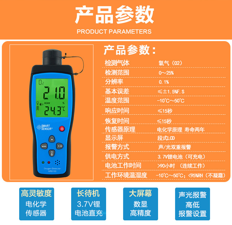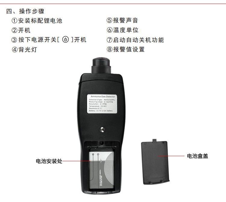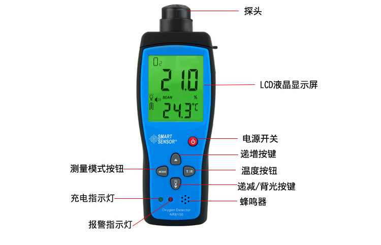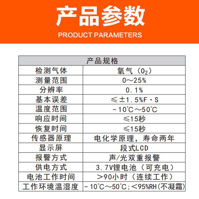| 报警 | 声、光双重报警,可以设置报警值,报警声可达80分贝 |