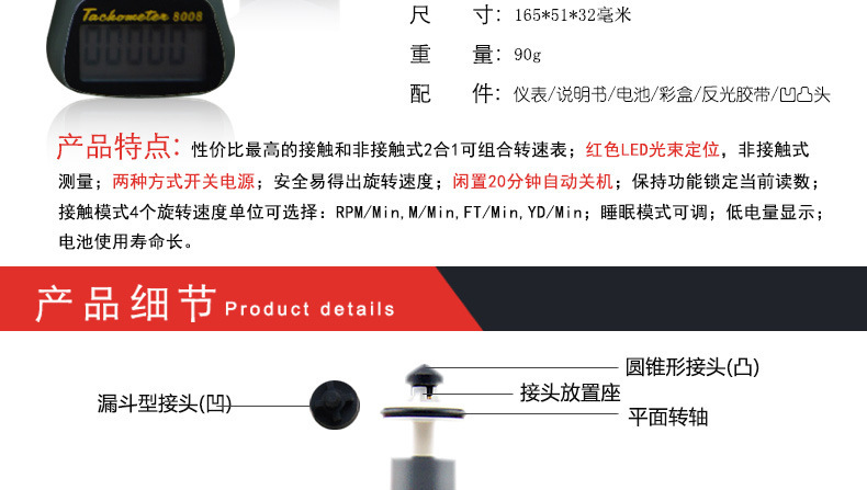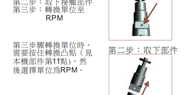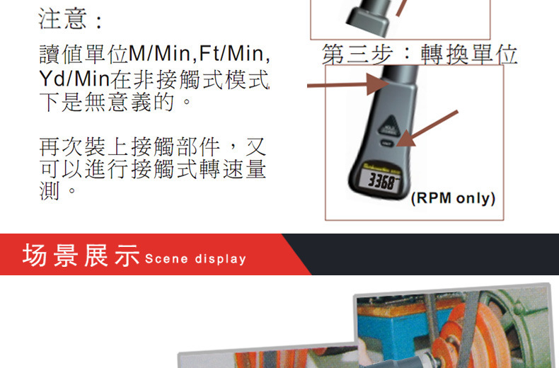 接触转速单位可选择:RPM 每分钟旋转数,M/Min 米/每分钟 ,Ft/Min 英尺/每分钟,Yd/Min 码/每分钟