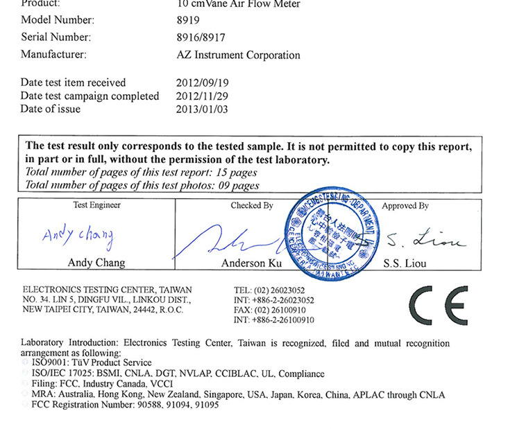 台湾衡欣风速计AZ8916: