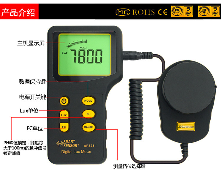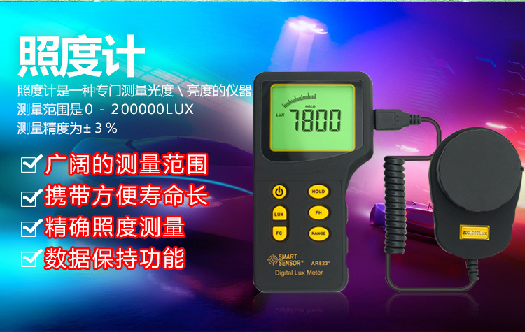 照度计(或称勒克斯计)是一种专门测量光度、亮度的仪器仪表。就是测量光照强度(照度) 是物体被照明的程度,也即物体表面所得到的光通量与被照面积之比。照度计通常是由硒光电池或硅光电池和微安表组成。