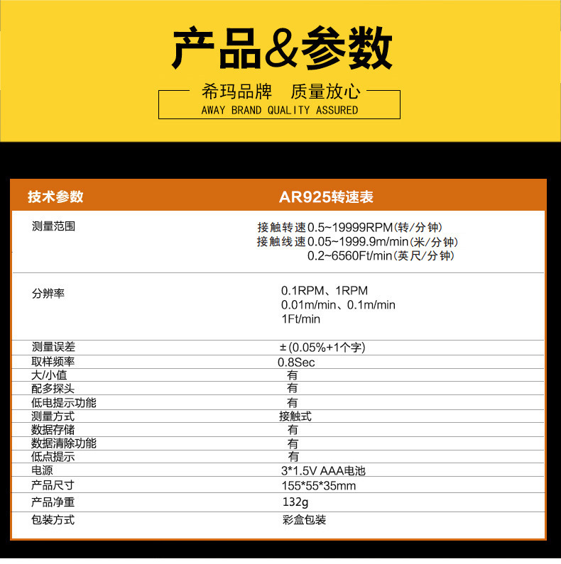 AR925接触式转速表 |