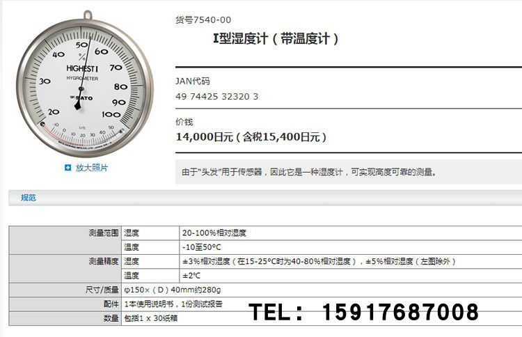 日本佐藤SATO 7542-00 精密毛发温湿度计,7542-00 高级温湿度计,7562-00 温湿度计(Palma II),PC-5000TRH-II 数显温湿度