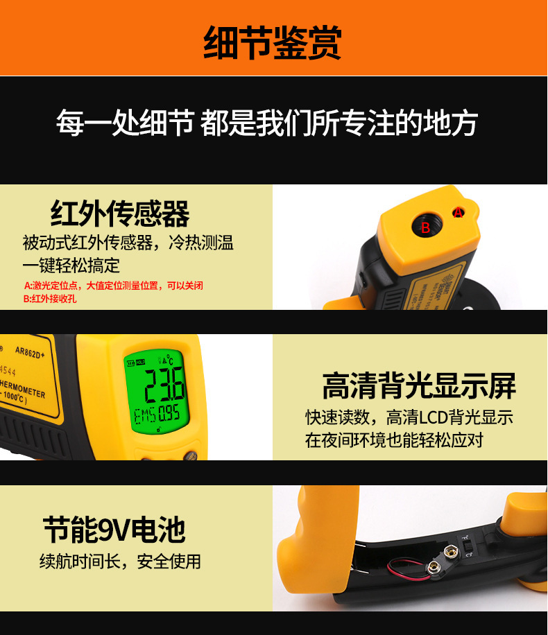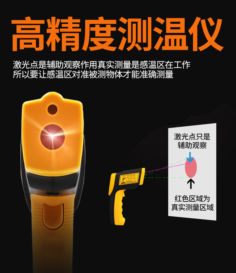 温馨提示:此款测温仪为工业测温仪不能用于测量人体温度!