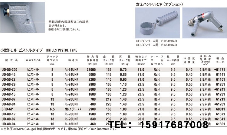日本瓜生URYU小型气动钻UD-60-20;UD-60-29;UD-80-04