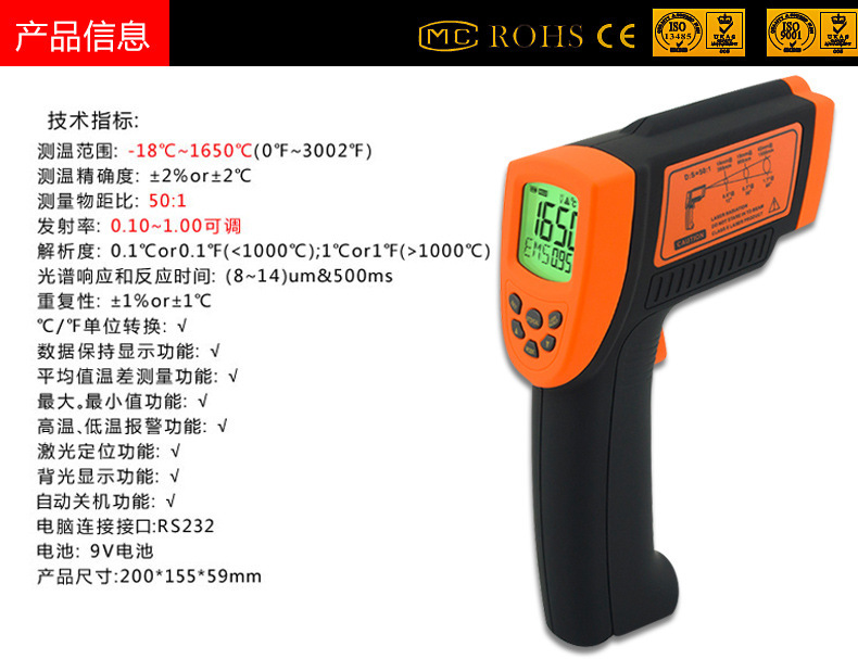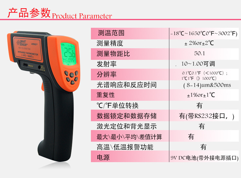 AR882+ 非接触高温红外测温仪 |