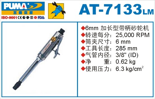 原装PUMA巨霸AT-7133LM 加长型带柄砂轮机