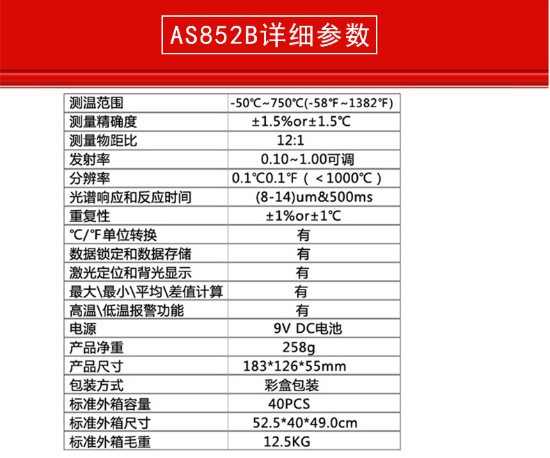 AS852B工业红外线测温仪 |