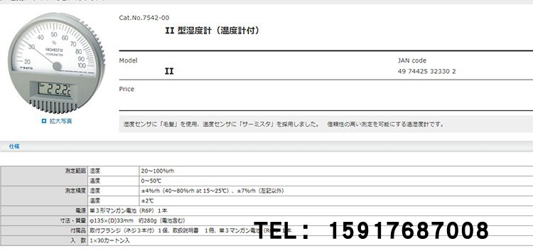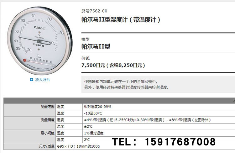 日本佐藤SATO 7542-00 精密毛发温湿度计,7542-00 高级温湿度计,7562-00 温湿度计(Palma II),PC-5000TRH-II 数显温湿度