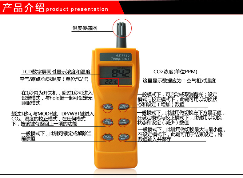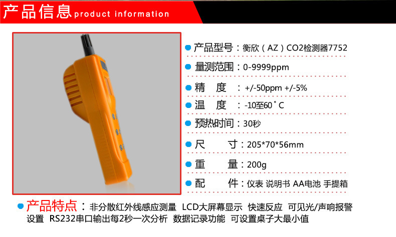 AZ7752便携式含温度测量二氧化碳