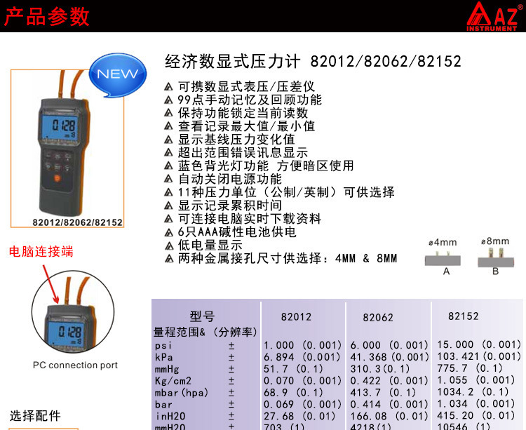型号:AZ82012数字压力表