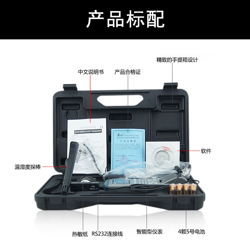台湾衡欣AZ9851列表式温湿度计,带记录,带打印功能,可同时检测温度,湿度,露点,湿球温度等