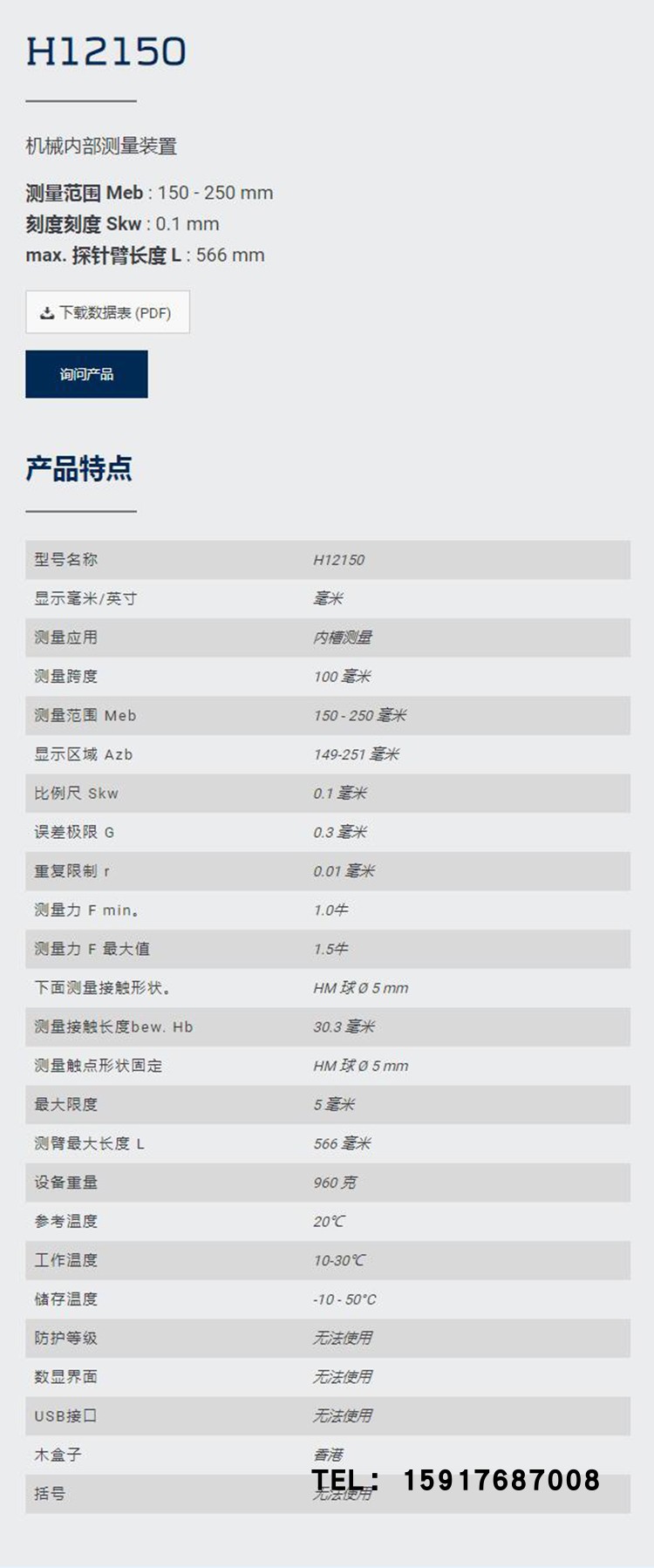 德国KROEPLIN古沃匹林机械式内径卡规H1290 H16200