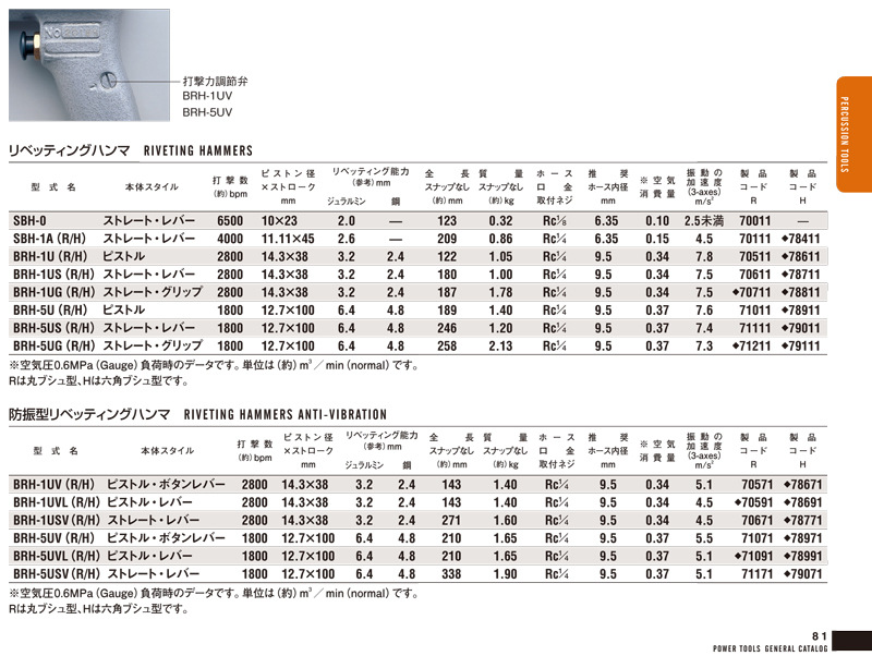 日本瓜生URYU气动小型铆接锤BRH-1U(R/H);BRH-1UG(R/H)