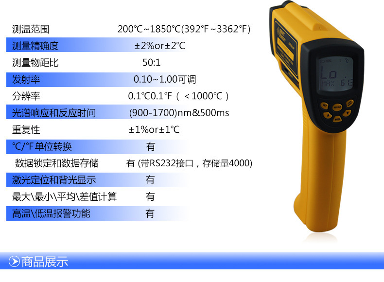 温馨提示:此款测温仪为工业测温仪不能用于测量人体温度!