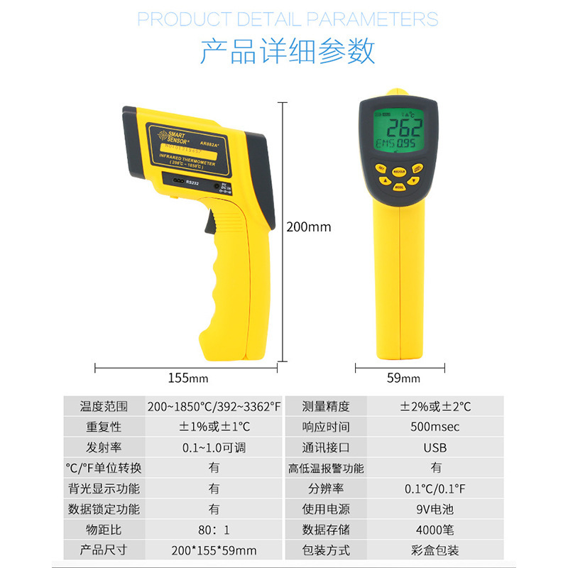 AR882A+高温远距离工业红外线测温仪 |
