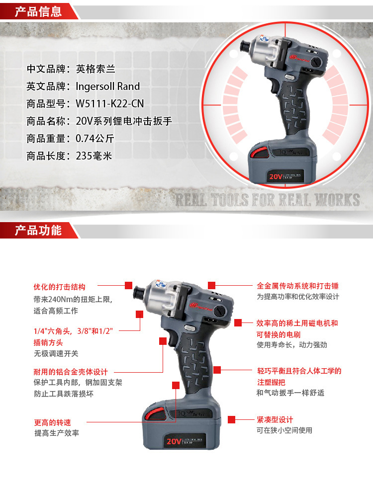 美国IR英格索兰W5111-K12-CN电动螺丝刀 充电式锂电起子机风批电钻