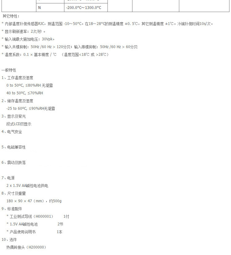 测温分辨率 |