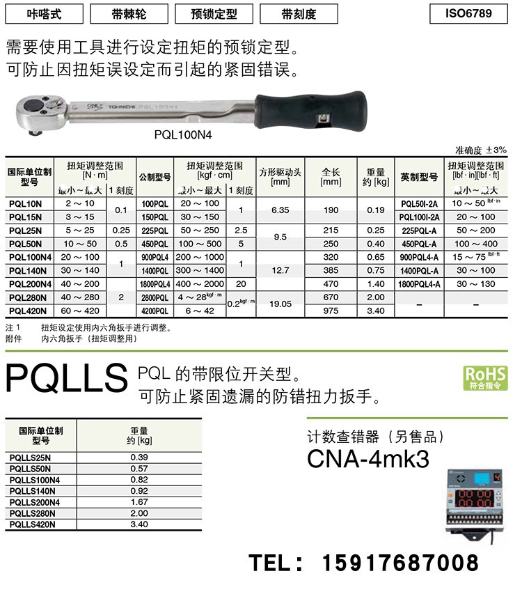 日本TOHNICHI东日扭力扳手PQL10N 15N 25N 50N 100N4 PQL140N 50PQL