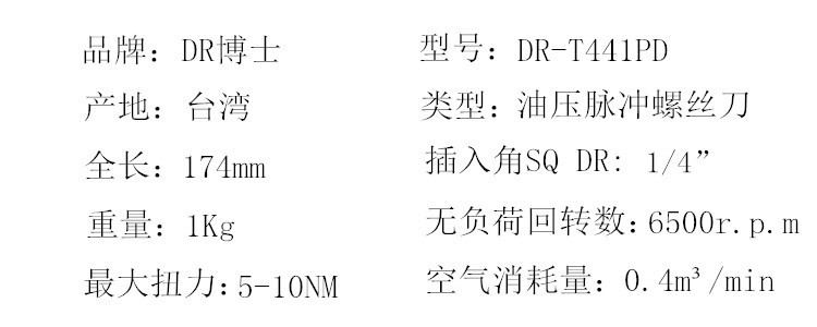 台湾DR博士气动油压脉冲定扭起子DR-T441PD气动螺丝刀气动起子