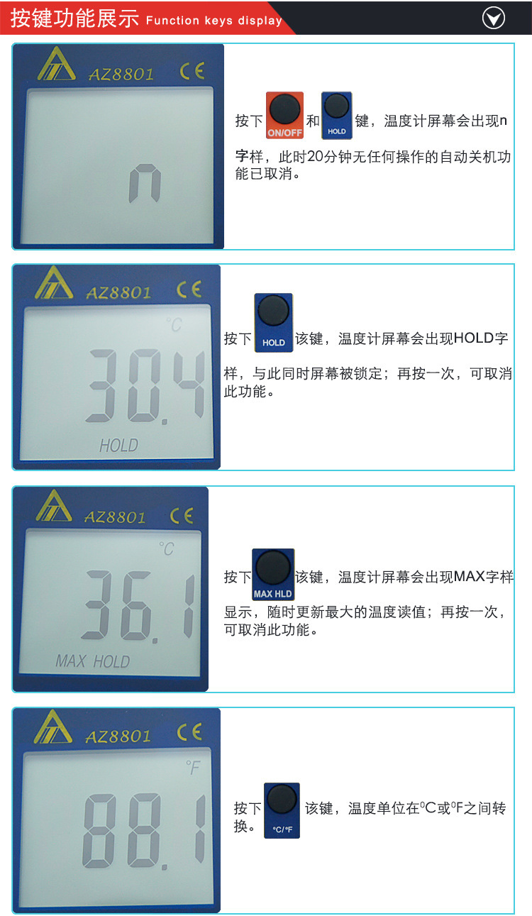 准确度:-50℃~1000℃ ±(0.3% rdg + 1℃)