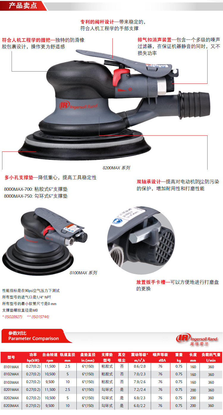 美国IR英格索兰8201MAX气动砂纸机 6寸偏心吸尘轨道打磨机 磨光机