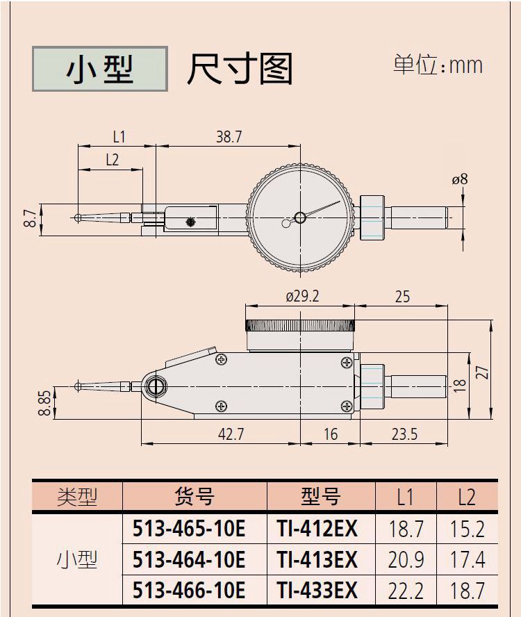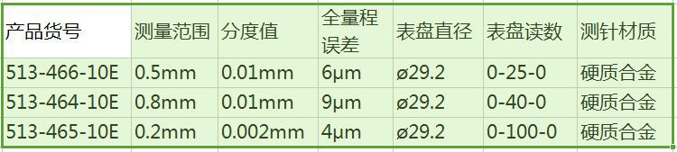 ? 三丰公司特有的全新结构来抑制测针握持部分发生损坏,防止测针灵敏度和追踪性能(平滑性能) 的恶化。? 指针和硬质合金测针具有防磁性,磁性环境中可不受其左右。? 表盘使用通用字体,通过修改表盘颜色、指针和刻度线粗细的关系,大幅度提高可视性。测针长度在刻度板上用插图显示。? 表蒙(表盖面) 是防眩平面型。并加有抑制刮蹭、污垢、反射的涂层。? 外壳和表蒙的一体化结构,可以防止切削液和油污从表盘上面和间隙里渗透。(但是,不是防水规格)