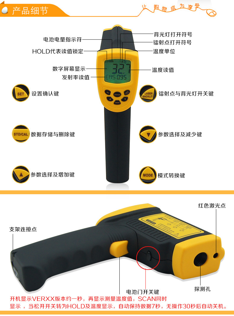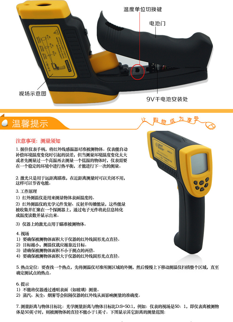 温馨提示:此款测温仪为工业测温仪不能用于测量人体温度!