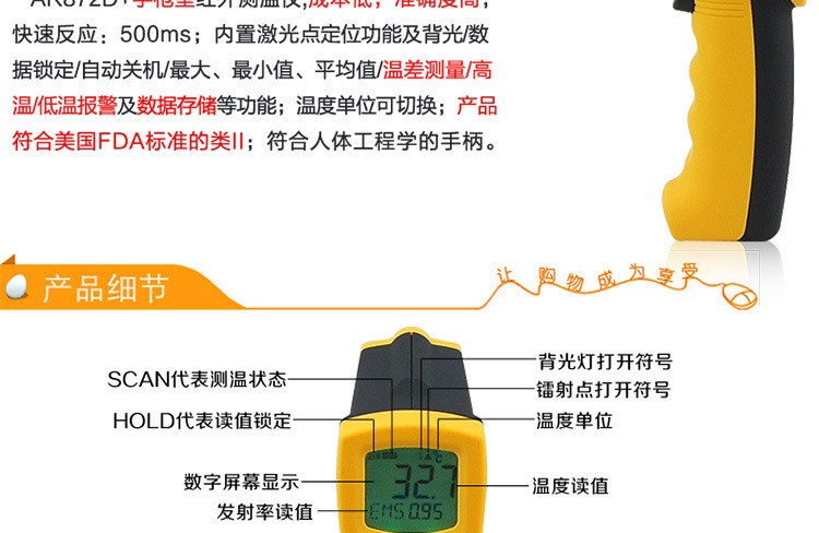 香港西玛AR872D+红外线测温仪,非接触式温度计