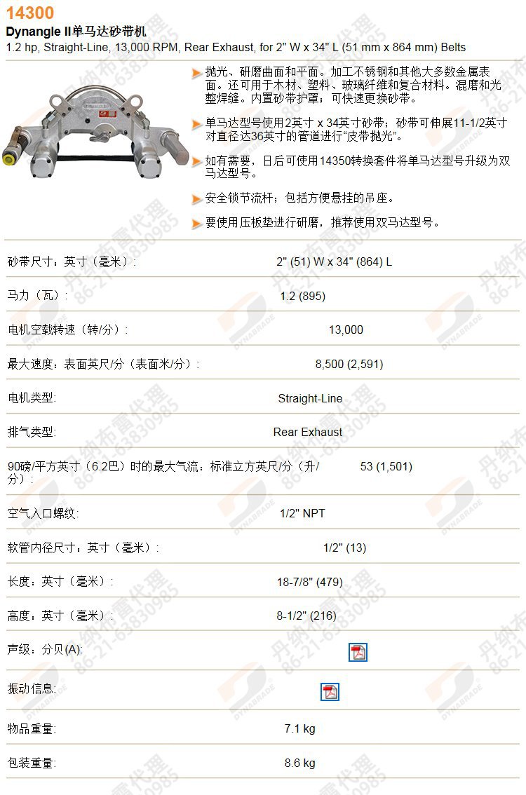 原装 美国丹纳布雷Dynabrade 14300气动砂带机 打磨家具瓷砖