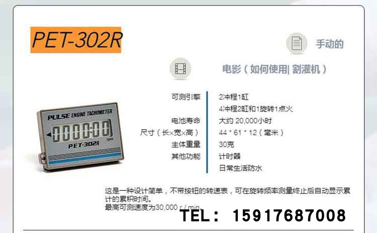 小型,高可靠性的数字转速表可用于摩托车,汽车,赛车车,摩托艇等!并一直活跃在广泛范围内的各种汽油发动机的维修仪器