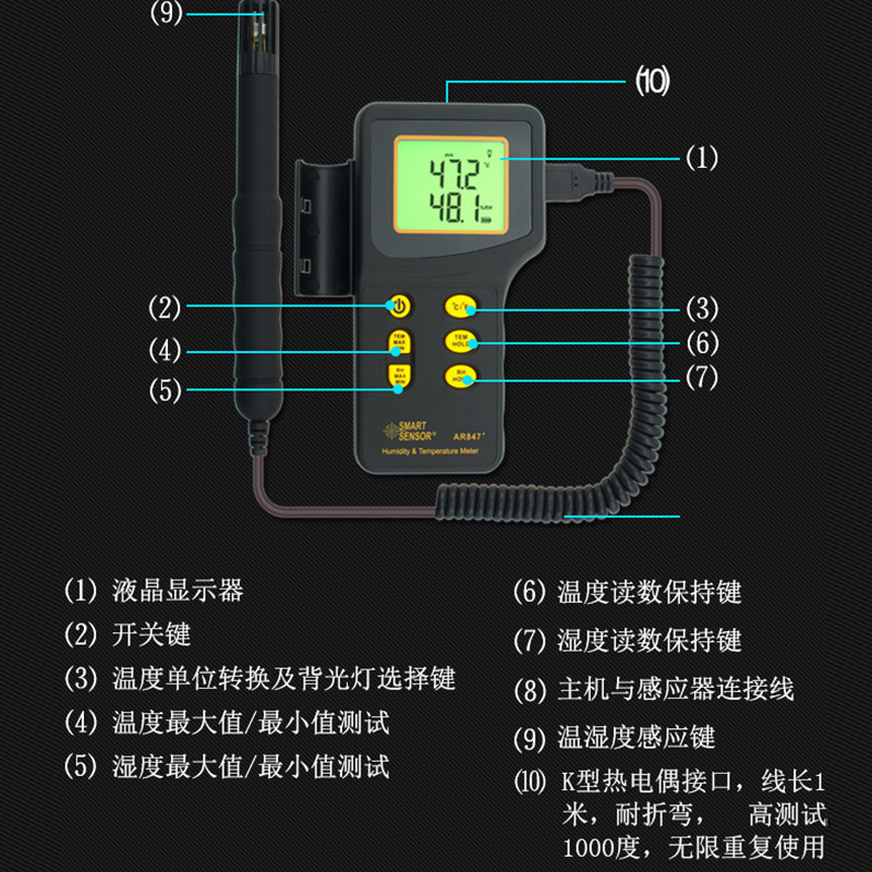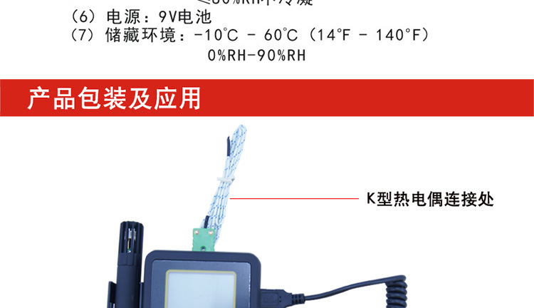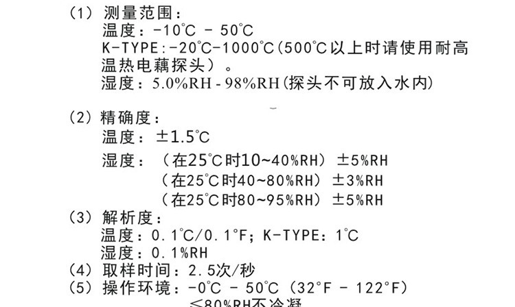 | 测温范围 | -10℃~50℃,-20℃~1000℃(K-type) |