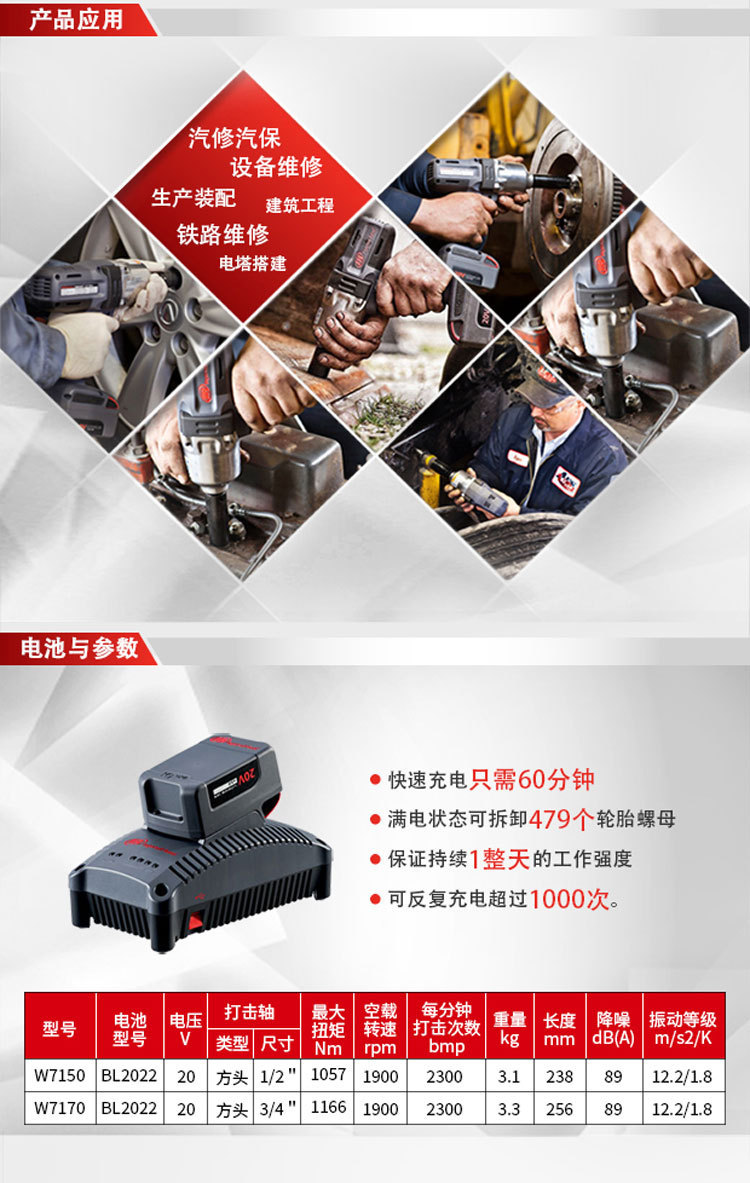 美国IR英格索兰W7150EU-P1/2锂电扳手 1/2充电式电动扳手