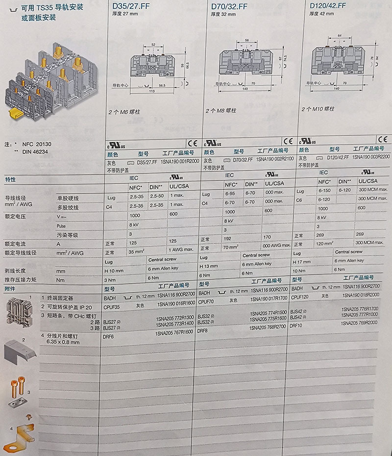 ABB/TE 螺钉大电流接线端子D35/27.FF 85100118 1SNA190001R2000