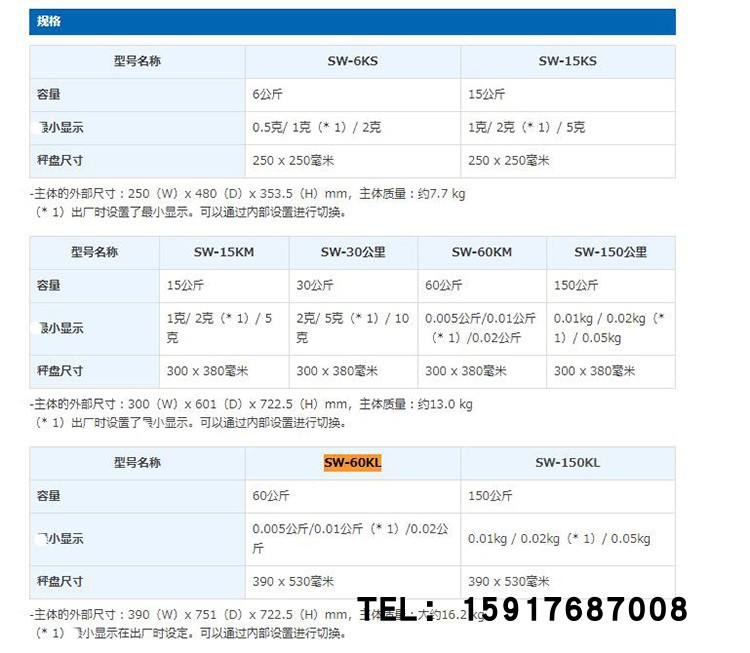 SW-6KS;SW-15KM;SW-30KM;SW-60KM 原装平台秤 |