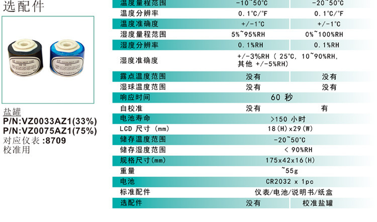 (8709)电池,使用说明书,可选配HR33%和HR75%校正溶液