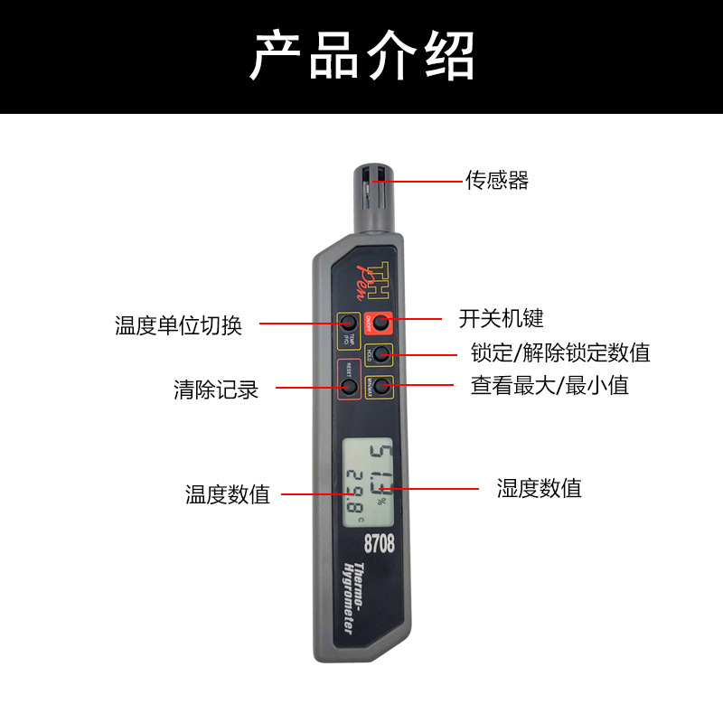 分辩率:0.1% R.H. 0.1℃, 0.1℉
