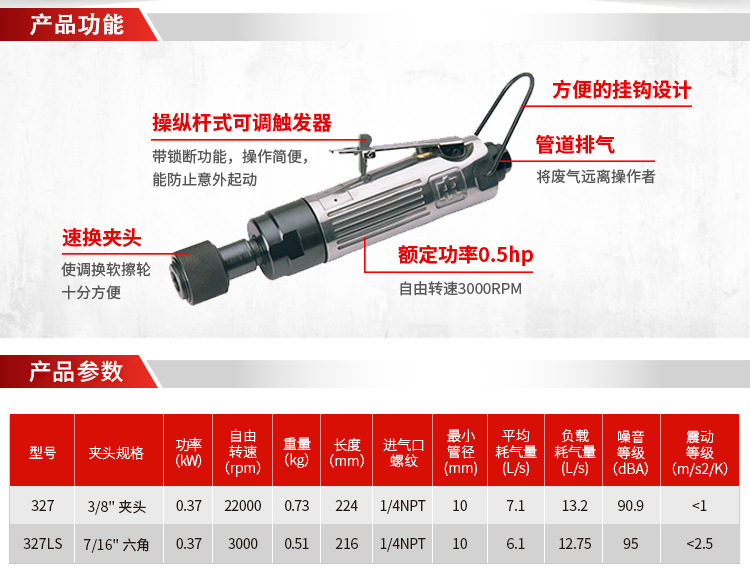 美国IR英格索兰327LS气动磨胎机 气动轮胎打磨机 低速轮胎修磨机