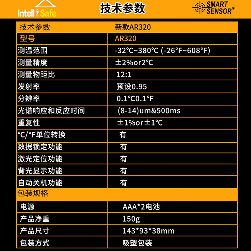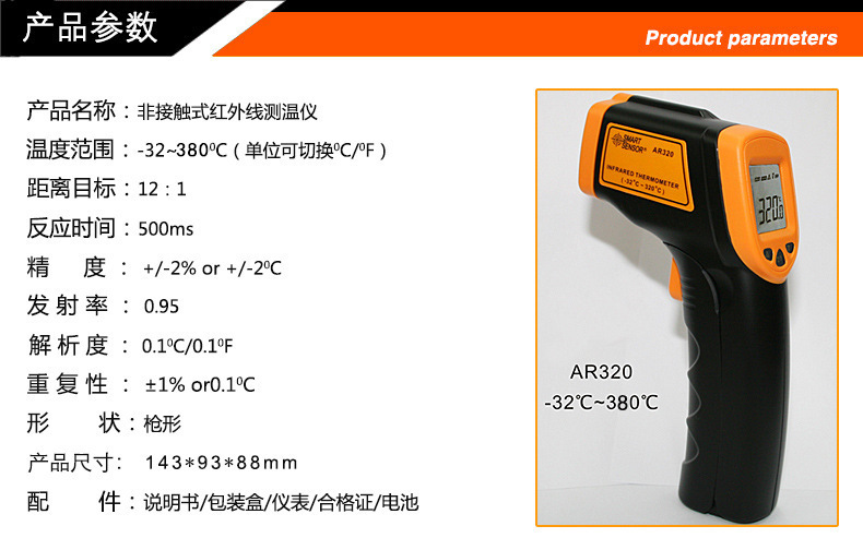 希玛 AR320激光温度计 红外线测温仪 非接触 工业用红外测温仪 外贸批发