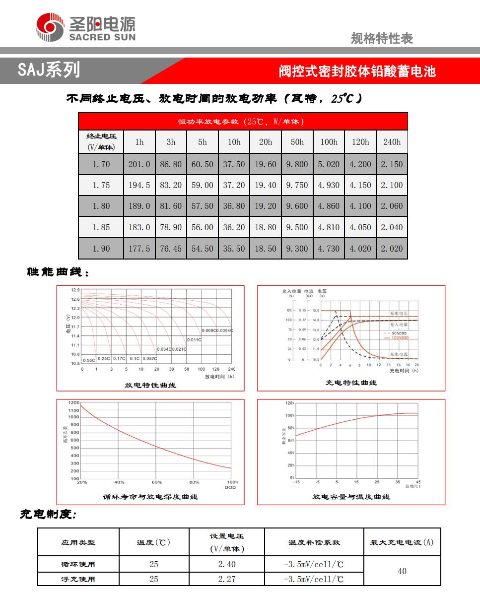 4. 循环寿命:在标准使用条件下, 25%DOD循环2000次;