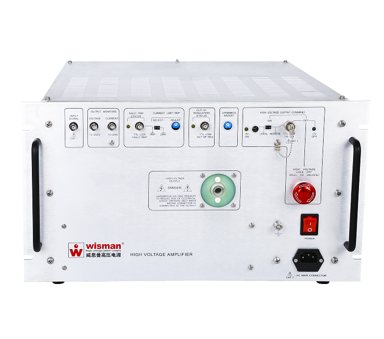 威思曼高压电源推出的AMR型是高压功率放大器,也叫高压放大器,用于工业和研究应用,全固态高压绝缘设计,可实现高转换速率,宽带宽和低噪声工作。四象限有源输出在整个输出电压范围内将电流吸收或输出到电抗性或电阻性负载中。这种类型的高压放大器输出对于实现准确的输出响应和各种负载(例如高电容性或电抗性负载)所需的高转换速率至关重要。该放大器为同相放大器。有过流保护,过流大小可设置。